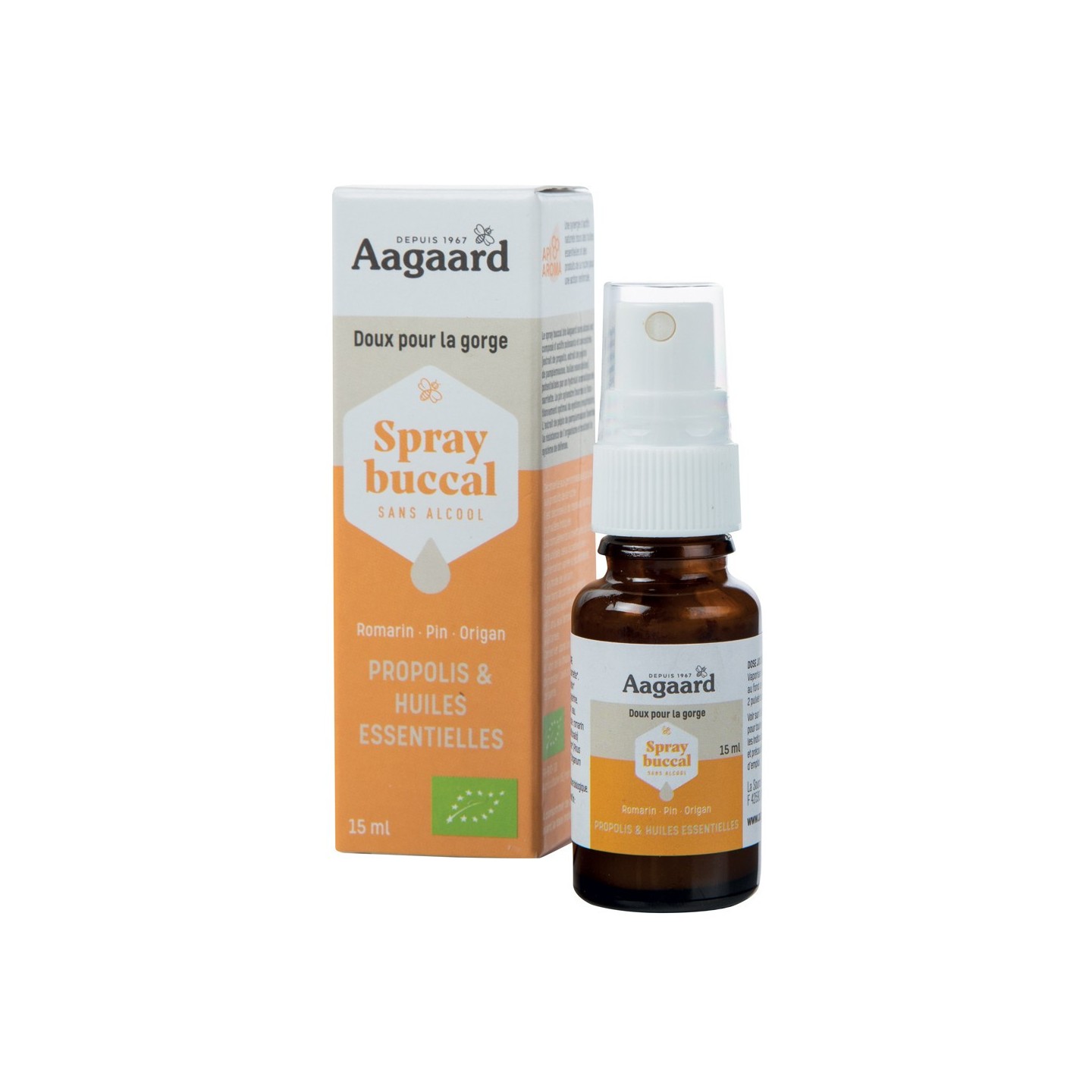 Spray buccal à la propolis et aux huiles essentielles - sans alcool - 15 ml - Aagaard