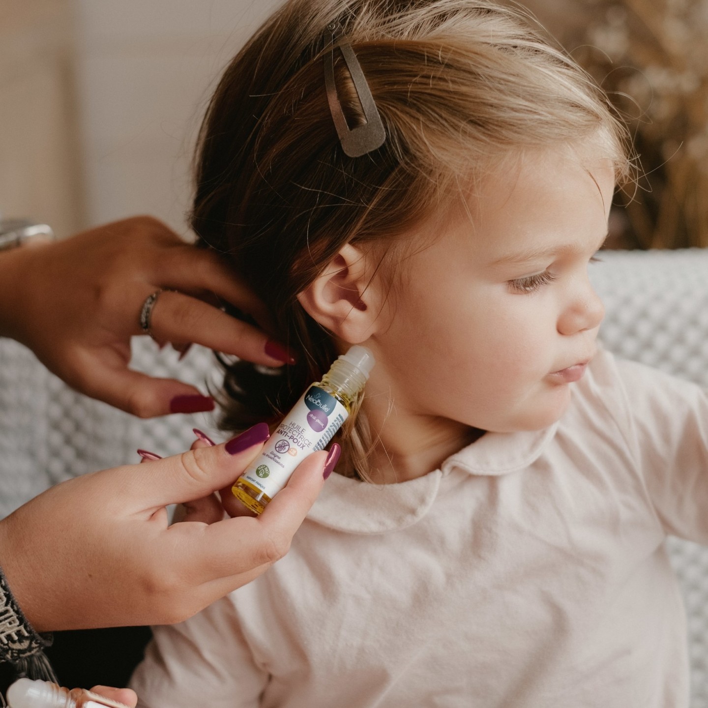 - Appliquez le stick derrière les oreilles et à la base du cuir chevelu, idéalement avant de partir à l’école ou lors de situations à risque.