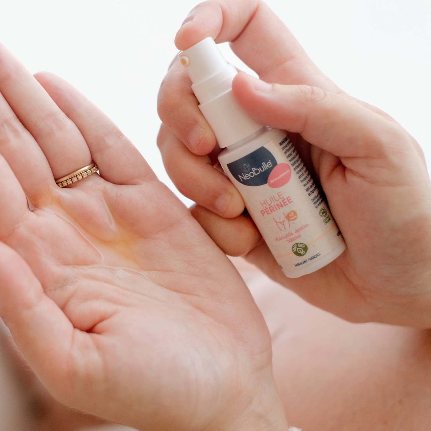 - Huile 100% bio pour assouplir et préparer le périnée avant l’accouchement et favoriser une récupération douce après la naissance.