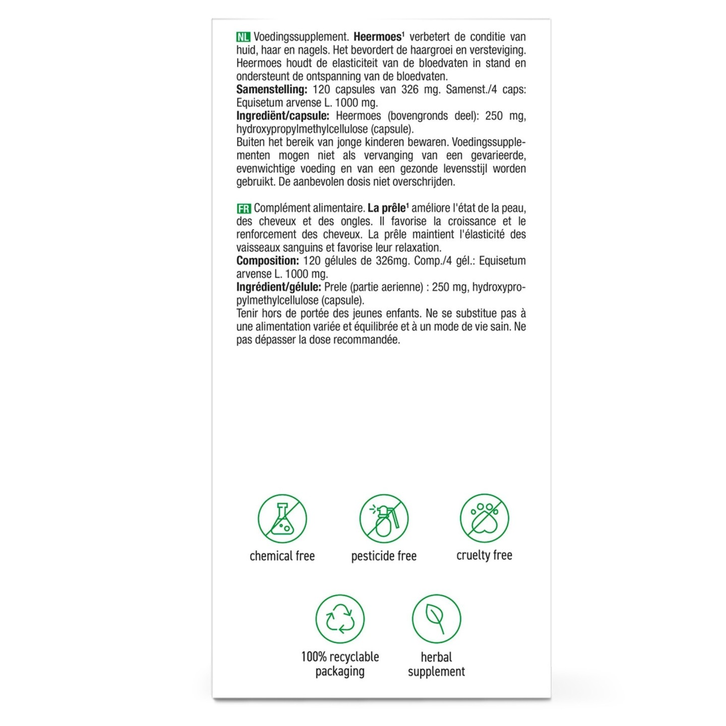 Prêle des champs (partie aérienne) : 250 mg, hydroxypropylméthylcellulose (capsule)