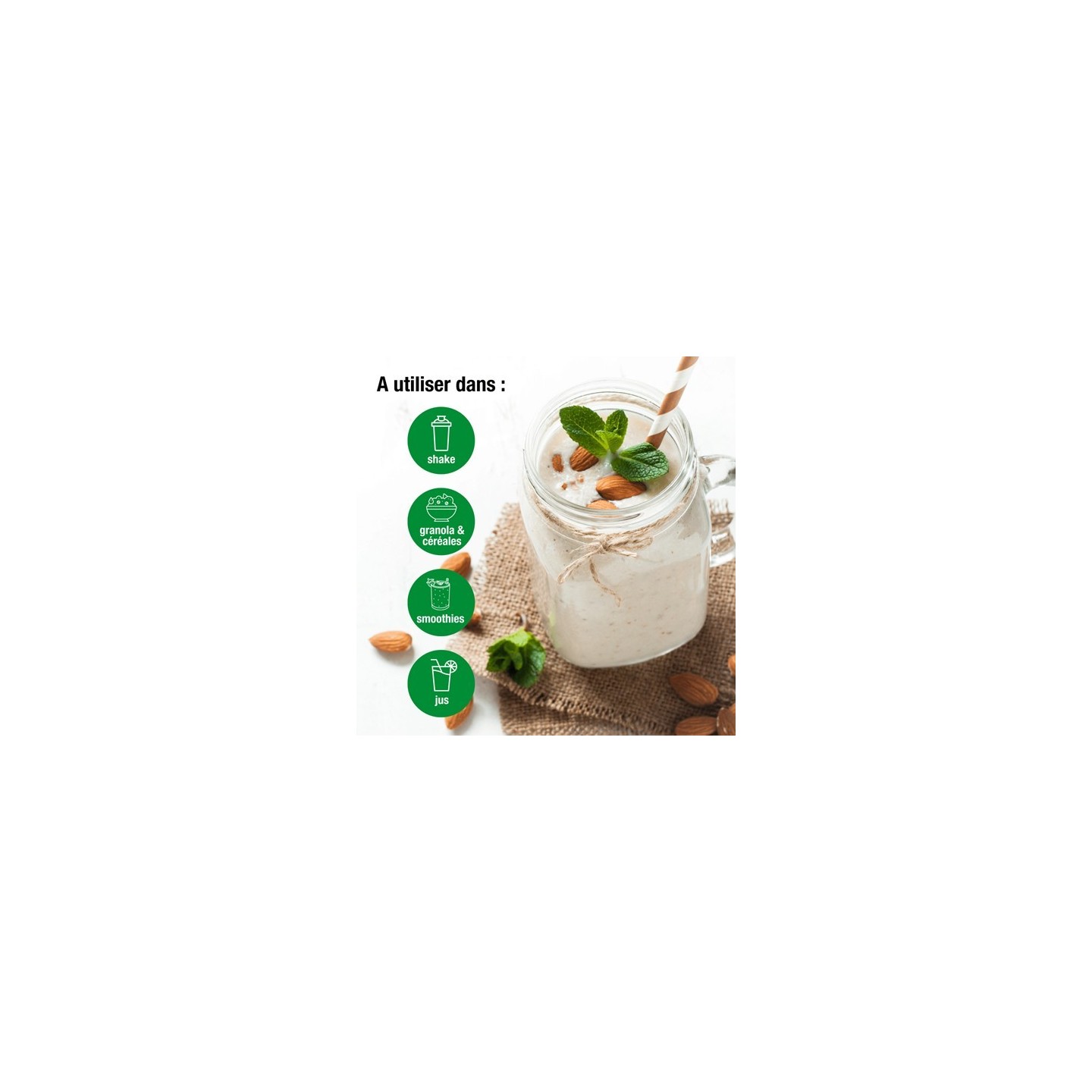 Mettre 3 cuillères pour 300 ml de smoothie.