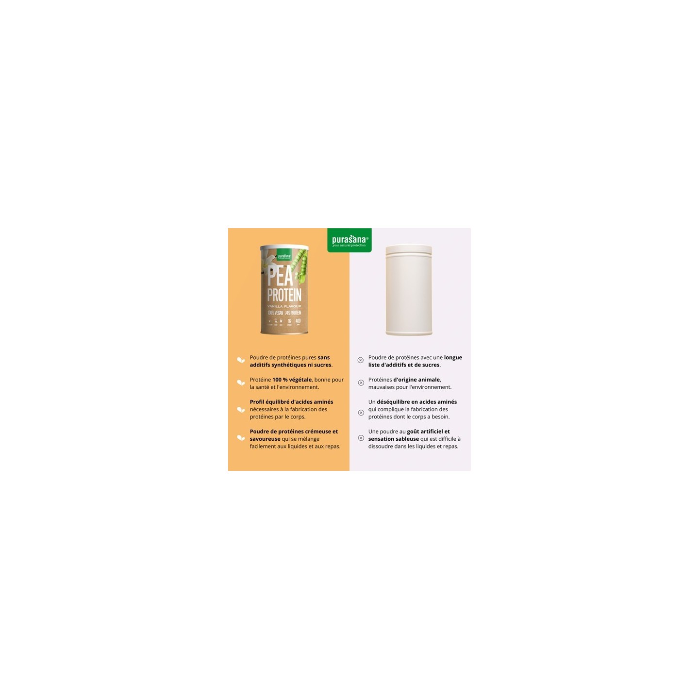 Protéine de pois, vanille - 400 gr - Purasana